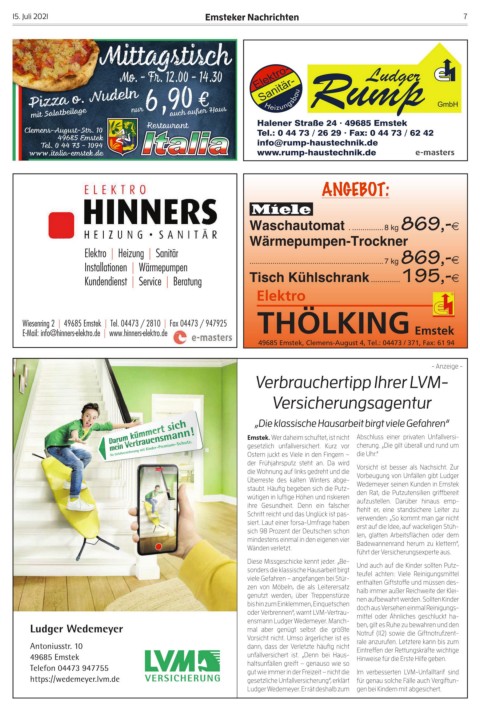 Emstek. Wer daheim schuftet, ist nicht Abschluss einer privaten Unfallversi-