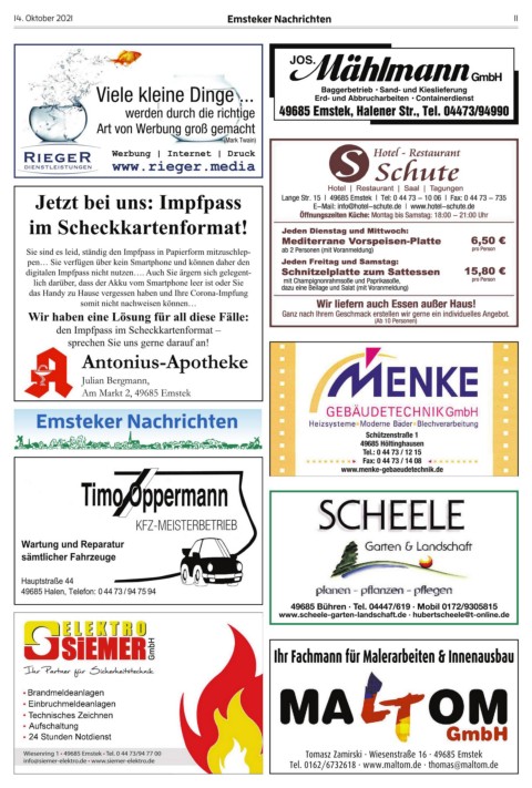 49685 Emstek, Halener Str., Tel. 04473/94990