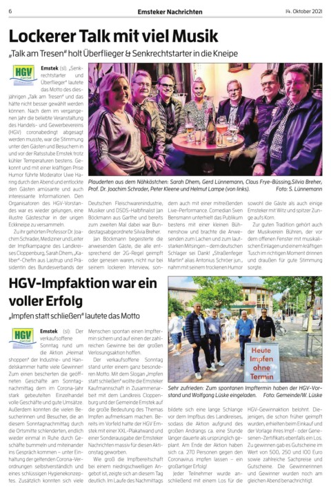 nachmittag dem im Corona-Jahr Kaufmannschaft in Zusammenar- Sehr zufrieden: Zum spontanen Impftermin haben der HGV-Vor-