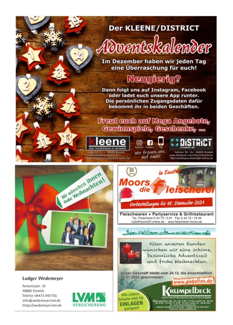 Unser Geschäft bleibt vom 24.12. bis einschließlich