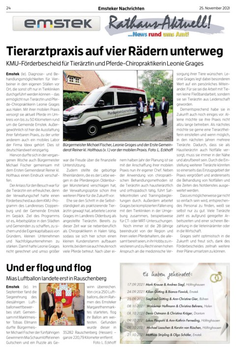 der Firma Idexx gehört. Dies ist Bürgermeister Michael Fischer, Leonie Grages und der Erste Gemein- Tierärzte. Dadurch, dass sie als