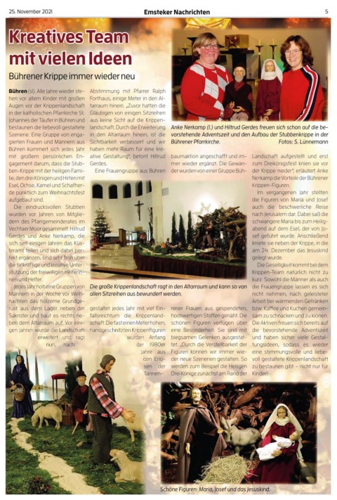 ben-Krippe mit der heiligen Fami- Eine Frauengruppe aus Bühren derwurdenvoneinerGruppeBüh- der Krippe nieder“, erläutert Anke