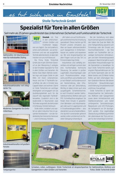 ist der Emsteker Spezialist für Tore eine hochkomplexe technische baut Stolle Tortechnik bereits auf