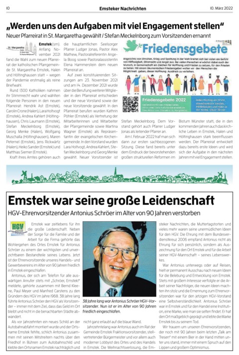 name Emstek fehlte, schlich Antonius zusam- Gemeinde Emstek Fraktionsvorsitzender, stell- der noch mit 90 Jahren beim letzten „Talk am