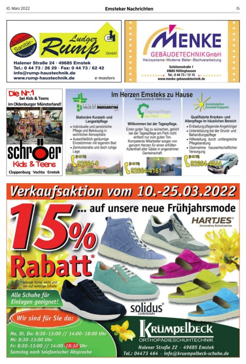 10. März 2022 Emsteker Nachrichten 15 Schützenstraße 1 49685 Höltinghausen Tel.:04473/1215 www.menke-gebaeudetechnik.de ͼ ͼ