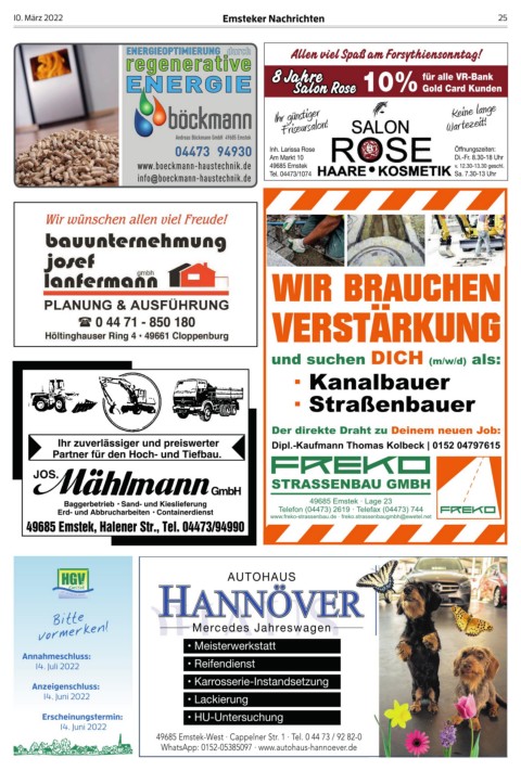 49685 Emstek, Halener Str., Tel. 04473/94990