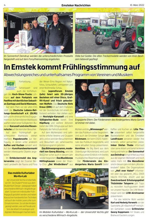 schmückten Marktplatz stehen reiche örtliche Vereine und Gruppen Und auch der Emsteker Sänger Jan Bastelarbeiten und die Emsteker