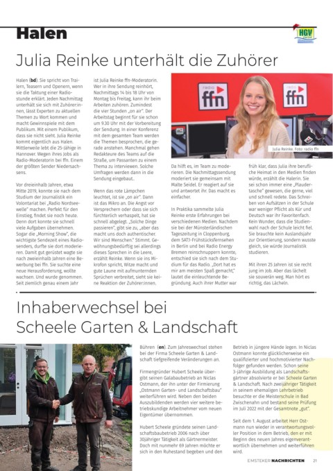 Halen (bd). Sie spricht von Trai- ist Julia Reinke ffn-Moderatorin.
