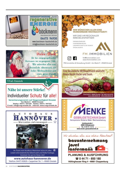 Wir wünschen ein frohes Weihnachtsfest! Wir wünschen eine besinnliche Adventszeit und schöne Feiertage! 26 EMSTEKER NACHRICHTEN