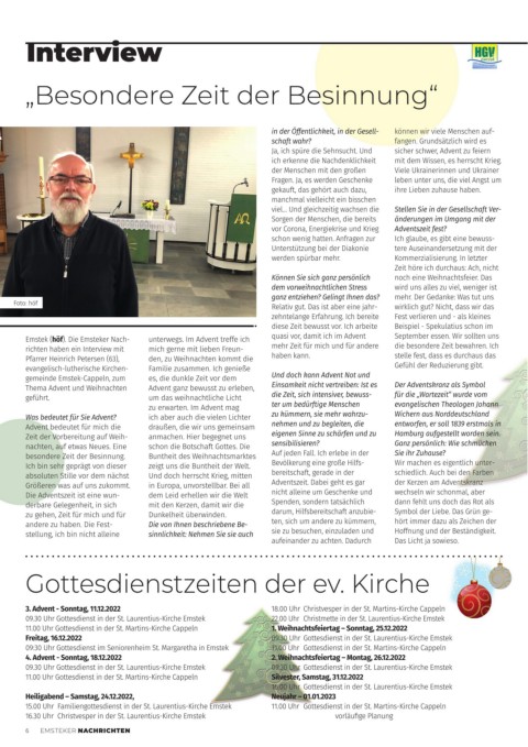 Freitag, 16.12.2022 09.30 Uhr Gottesdienst in der St. Laurentius-Kirche Emstek
