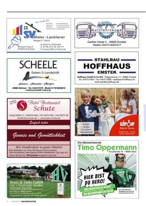 Erstkommunion 2023 Einfach lecker ∙ Kleider ∙ Anzüge ∙ Accessoires Kids & Teens Genuss und Gemütlichkeit ∙ Haarschmuck Cloppenburg ∙ Vechta Telefon 04441 81187 8 EMSTEKER NACHRICHTEN