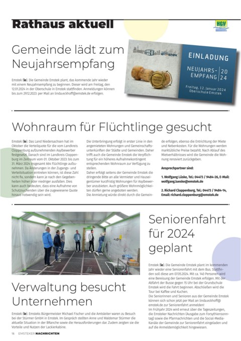 Emstek (le). Emsteks Bürgermeister Michael Fischer und die Amtsleiter waren zu Besuch die Emsteker Nachrichten (Ausgabe zum Forsythiensonn-