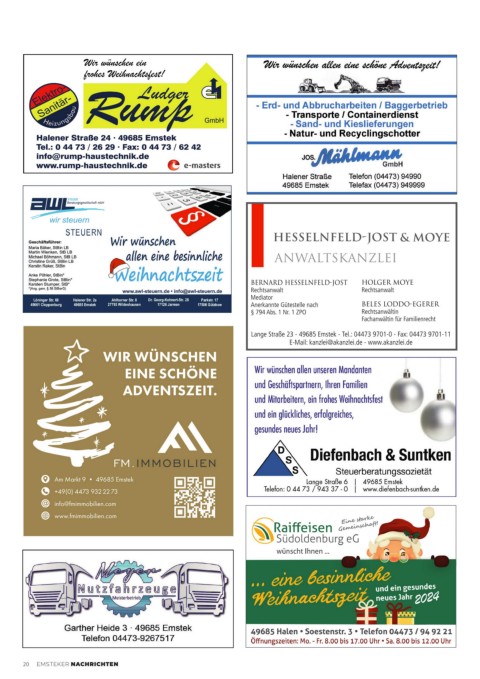 WIR WÜNSCHEN EINE SCHÖNE ADVENTSZEIT. Am Markt 9 • 49685 Emstek +49(0) 4473 9322273 info@fmimmobilien.com www.fmimmobilien.com 20 EMSTEKER NACHRICHTEN