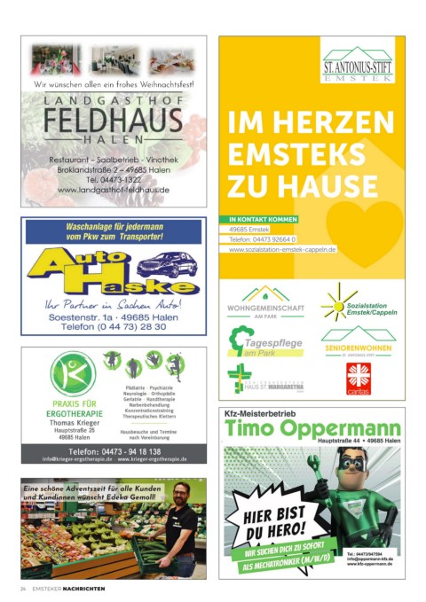 Eine schöne Adventszeit für alle Kunden und Kundinnen wünscht Edeka Gemoll! 24 EMSTEKER NACHRICHTEN