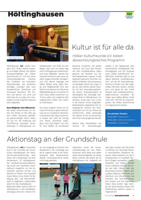 breit aufgestellt. zu unterstützen. in die Halener Kirche eingeladen. partner der Hölker Kulturfreunde