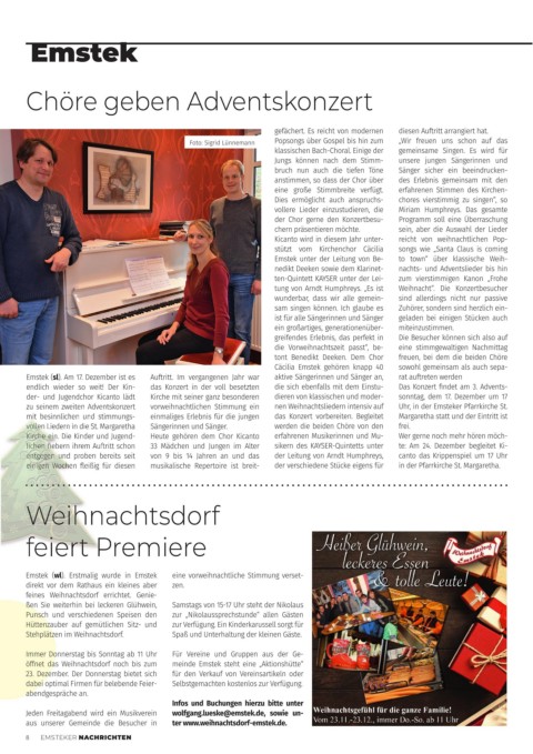 aus unserer Gemeinde die Besucher in ter www.weihnachtsdorf-emstek.de.