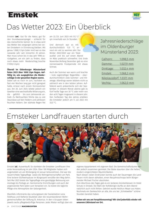 fielen 2023 über 1000 l/qm Regen. Auf- Auch der Sommer war warm und brachte Emstek: 1.068,3 mm
