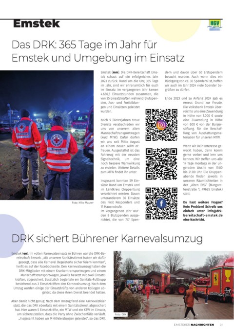 Emstek (en). Im vollen Karnevalseinsatz in Bühren war die DRK-Be-
