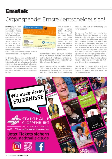 scheiden, ob die Organe entnommen wer- Stoll zu Wort. Frau Stoll ist als Intensivkran- Waltraud und Kristin Dahm für ihren offenen