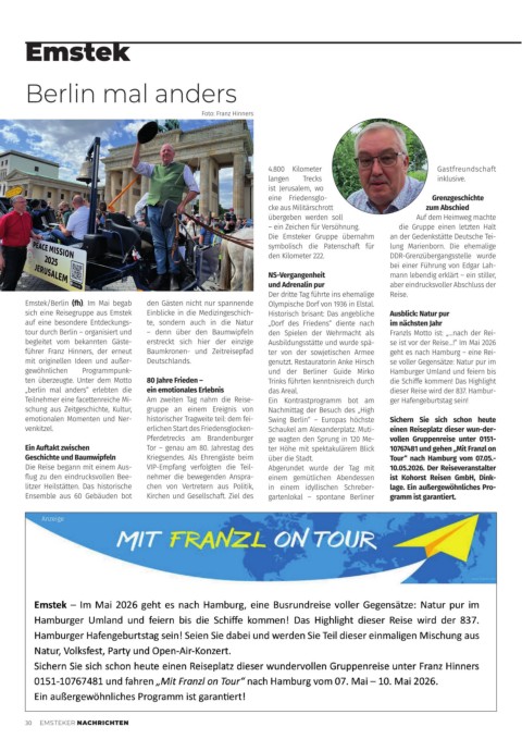 führer Franz Hinners, der erneut Baumkronen- und Zeitreisepfad ter von der sowjetischen Armee geht es nach Hamburg – eine Rei-
