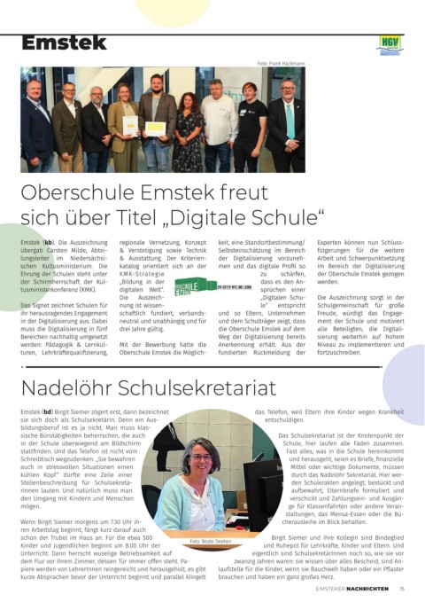 Ehrung der Schul en st eht unt er KMK-Strategie zu schärfen, der Oberschule Emstek gezogen