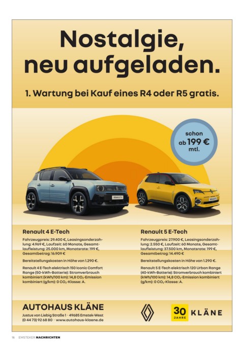 Renault 4 E-Tech elektrisch 150 Iconic Comfort Renault 5 E-Tech elektrisch 120 Urban Range
