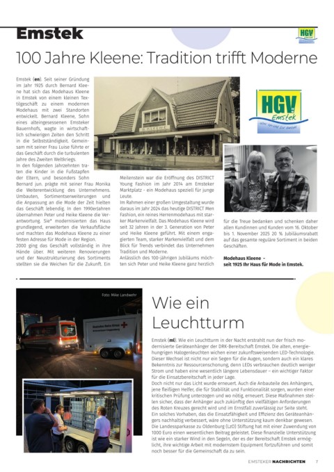 stellten sie die Weichen für die Zukunft. Ein ten sich Peter und Heike Kleene ganz herzlich seit 1925 Ihr Haus für Mode in Emstek.